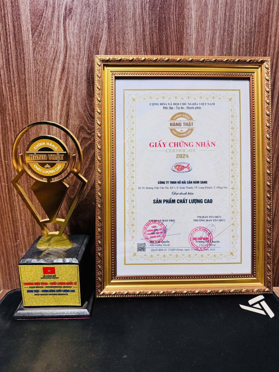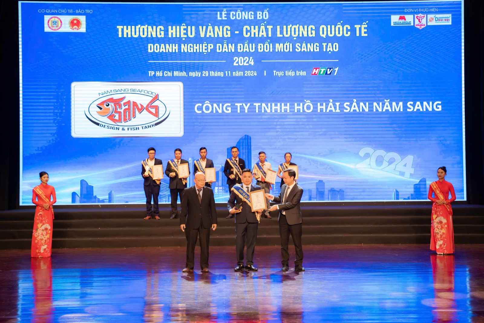 Vào sáng ngày 29/11/2024, Lễ Công bố “Thương hiệu vàng – Chất lượng Quốc tế và Doanh nghiệp dẫn đầu đổi mới sáng tạo” đã diễn ra long trọng tại Nhà hát Quân Đội (phía Nam). Tại sự kiện lần này, Công ty TNHH Hồ Hải Sản Năm Sang đã vinh dự đạt được danh hiệu: Sản Phẩm Chất Lượng Cao. Trong tương lai sắp tới, Công ty chúng tôi luôn mong muốn các sản phẩm của công ty mình luôn được sự đón nhận của các đơn vị kinh doanh hải sản trong khắp cả nước, để xứng đáng với giải thưởng “Sản Phẩm Chất Lượng Cao” mà Công ty chúng tôi đã vinh dự nhận được.
