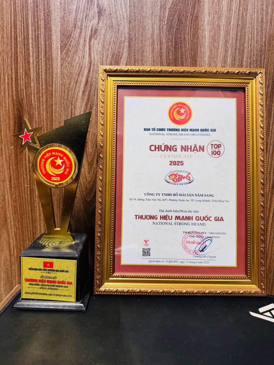 CÔNG TY TNHH HỒ HẢI SẢN NĂM SANG – VINH DỰ ĐẠT DANH HIỆU TOP 100 THƯƠNG HIỆU MẠNH QUỐC GIA 2025